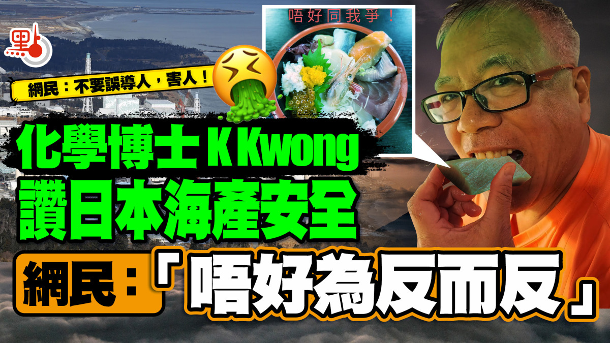 K Kwong在帖文分享了自己對日本排放核水和吃魚生的看法,話唔怕日本排放福島核污水,因為濃度低;個人亦不支持政府禁日本10個縣海產品,話係「搵嘢嚟做」。不過,認為禁令對他「冇乜影響」,因他一向好少係香港食日本料理,因為貴過日本好多,亦冇咁新鮮,仲話「我會飛去日本食!唔好同我爭!」對於有質疑「係咪你自己唔怕死咋?」,他就話「我個孫都食日本生果喎!」