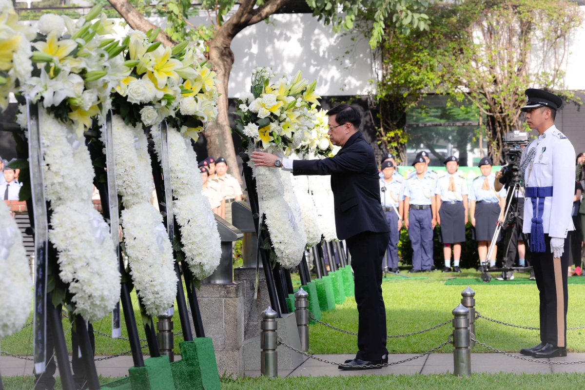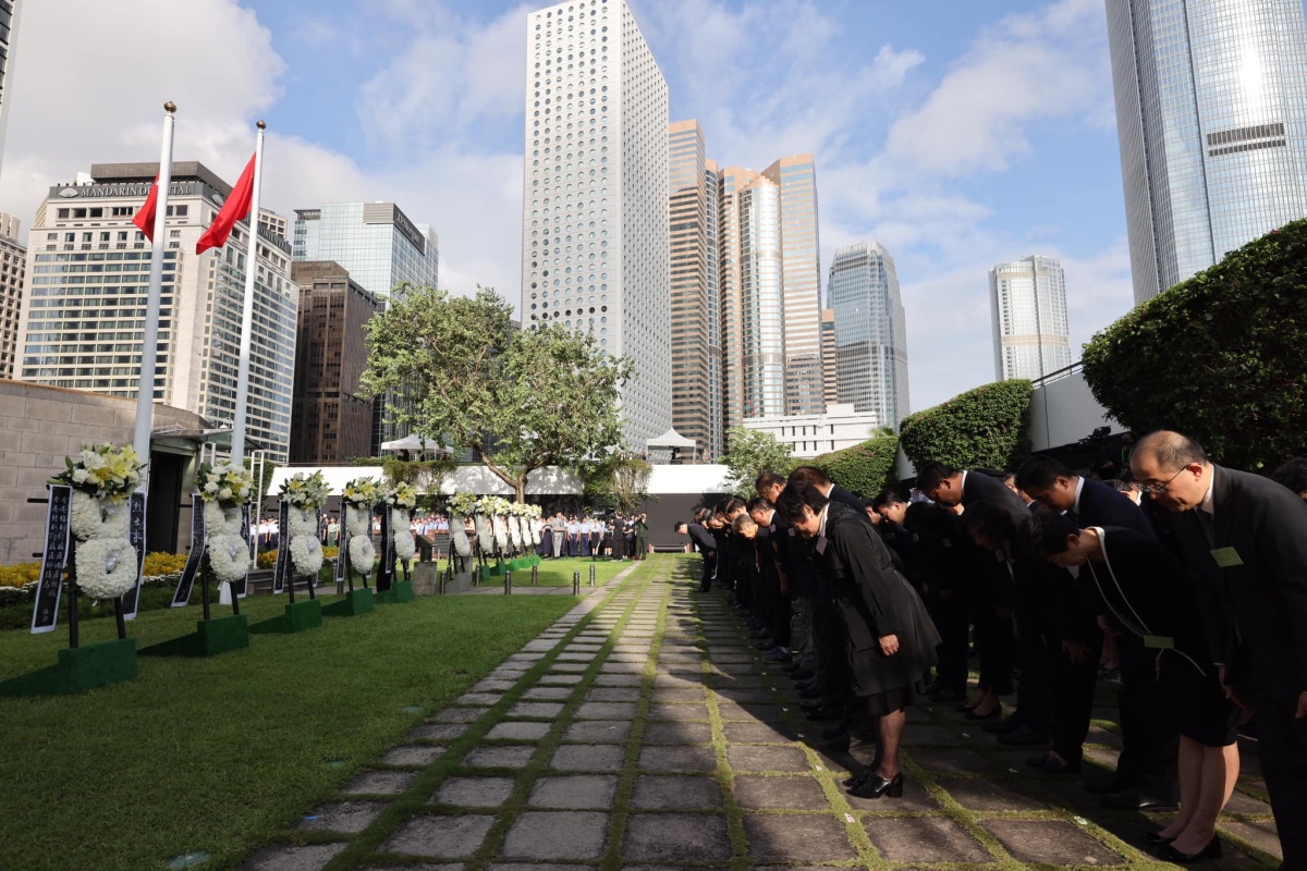 【點新聞報道】今日(9月3日)是中國人民抗日戰爭勝利紀念日,行政長官李家超、特區政府高層官員、立法會議員及社會各界人士上午出席在香港大會堂紀念花園舉行的官方儀式。