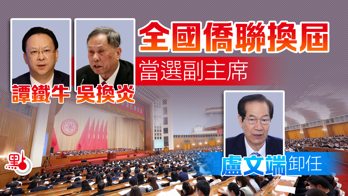 【點新聞報道】中國僑聯第十一屆委員會第一次全體會議昨日(2日)在京召開。大會通過選舉產生全國僑聯新一屆領導層,萬立駿連任僑聯主席,副主席共有18人,包括南京大學黨委書記、前中央政府駐港聯絡辦副主任譚鐵牛,以及香港僑界社團聯會首席主席余國春、香港福建社團聯會榮譽主席吳換炎。前任副主席盧文端卸任。