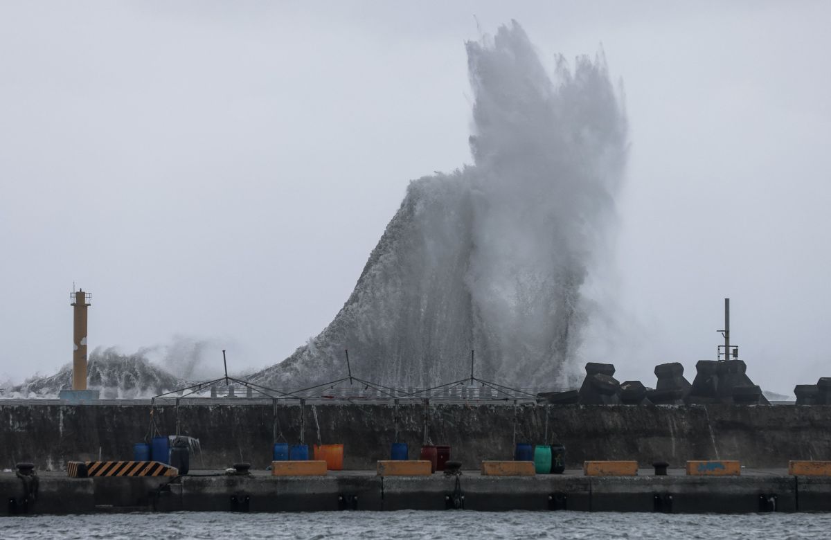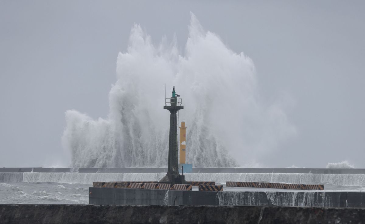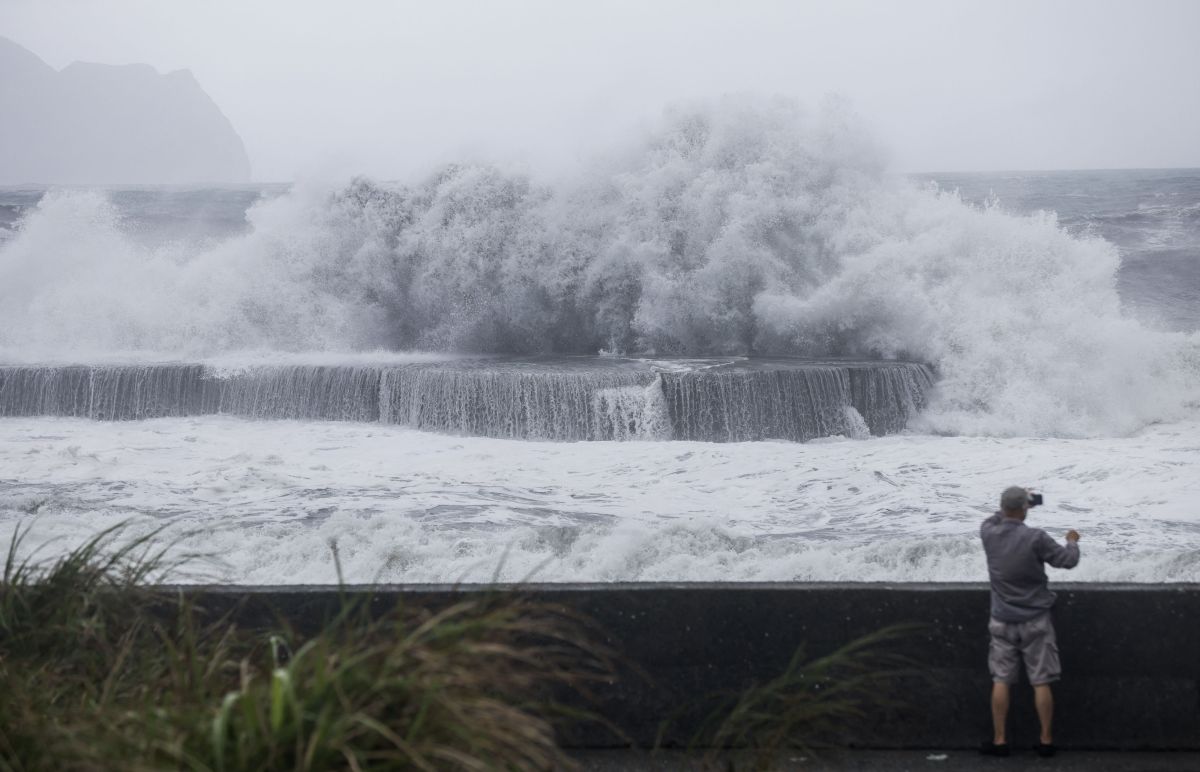 宜蘭沿海區域颱風威力強勁,岸邊掀起滔天巨浪,目測至少有5米高,正不斷拍打上岸。惟橫風橫雨之下,仍有當地居民不肯離開,而是在岸邊圍觀,用手機拍攝巨浪。