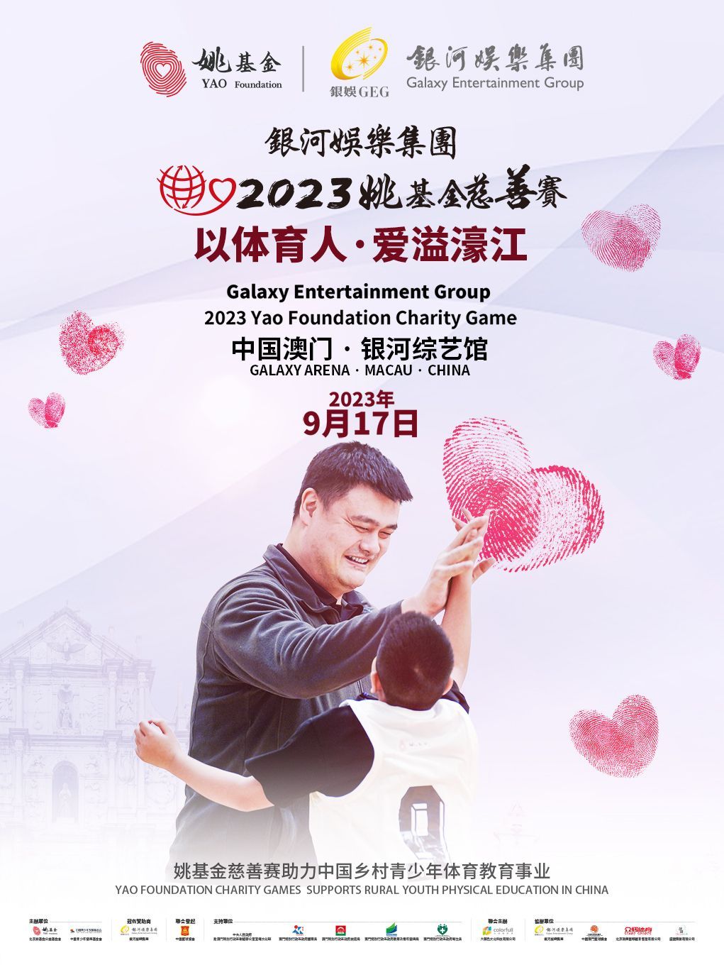 本次姚基金慈善賽由北京姚基金公益基金會和中國青少年發展基金會發起主辦,中國籃球協會聯合發起,中央人民政府駐澳門特別行政區聯絡辦公室宣傳文化部、澳門特別行政區政府體育局、旅遊局、教育及青年發展局、衞生局、中國澳門體育總會聯合會共同支持,大顏色文化科技有限公司聯合主辦及運營,中央廣播電視總台體育頻道、銀河娛樂集團、中國澳門籃球總會、北京眾輝國際體育管理有限公司、盛匯策劃有限公司協辦,並由銀河娛樂集團冠名贊助。
