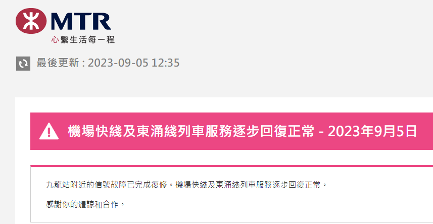 及至中午12時許,有關信號故障已完成復修,機場快綫及東涌綫列車服務逐步回復正常。