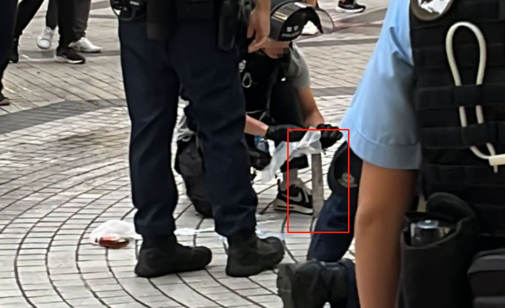 【點新聞報道】今日(5日)傍晚約6時,一名年約40歲男子被途人發現手持利刀及推着一架手推車,在九龍灣淘大花園商場外遊走,恐會作出襲擊行為,故報警求助。大批身穿戰術背心及手持長盾牌的警員趕抵展開搜捕,未幾即在商場對出一段私家路發現持刀男子,其間有約10名警員一擁而上將該可疑男子按倒地上制服,一把利刀亦跌在路面,無人受傷。據悉,被捕男子當時身有酒氣。