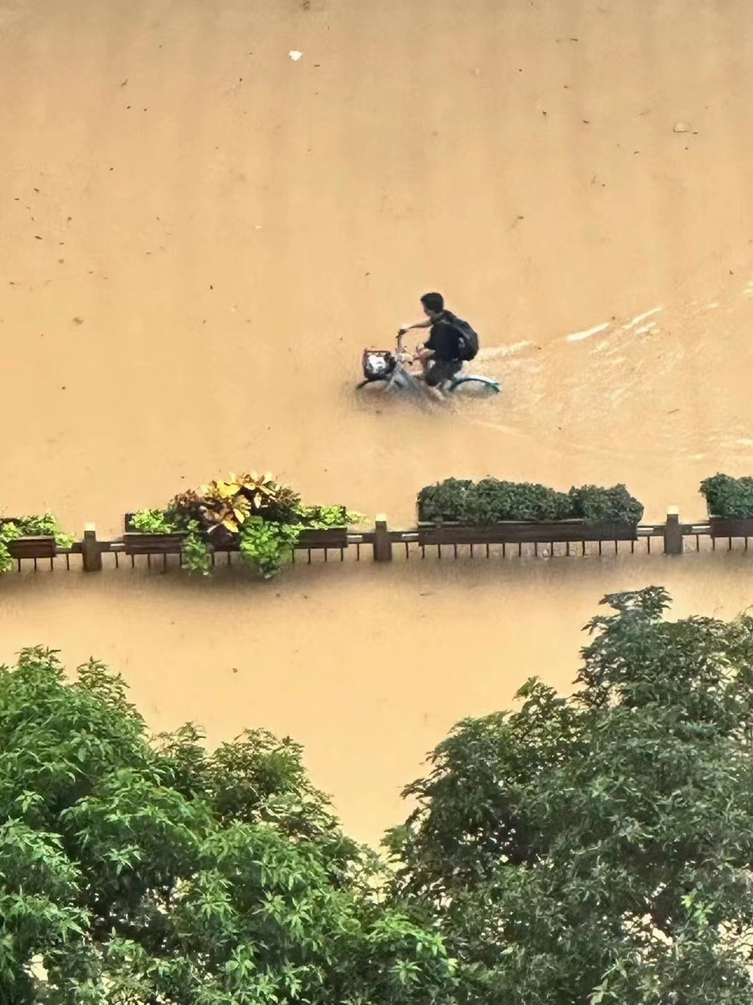隨後,記者在朋友圈、各微信群組裏,網友們都在發各處被淹的視頻和圖片。家住馬尾、倉山等處的友人,更給記者發來了洪水傾瀉入戶,屋內雙開門電冰箱都漂浮起來的視頻。在福州鼓樓區五四路某大廈值夜班的友人鄧先生告訴記者,街面儼然就是河面,停在路面的共享單車都被洪水淹沒了。友人陳小姐則因回家道路積水嚴重,昨夜一人一車守在福州灣邊大橋下眼睜睜度過了一個漫漫長夜。「很多人冒着積水將車開到了橋上,我在橋下找了處地勢相對高的地方提心吊膽過了一夜,終於等到天亮。」陳小姐說。