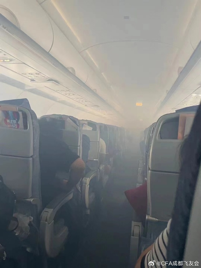 有內媒引述航班一名乘客表示,該航班座位基本坐滿,近150座,於下午4點15分左右落地,在落地前幾分鐘,機艙內冒起濃煙。其間空姐喊着:「大家不要緊張,不要拍照,坐下來。」該乘客說,當時空姐積極給乘客發濕紙巾保護口鼻,「空姐比較專業,一直在安撫大家,(乘客們)情緒還是比較鎮靜。」
