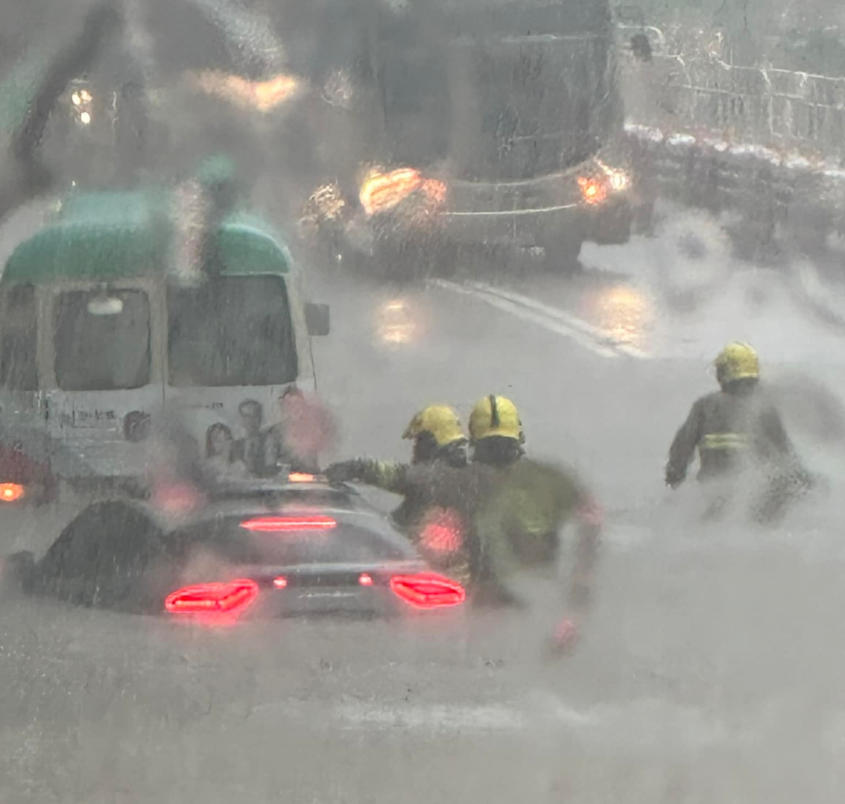 (有片+多圖)將軍澳西貢多處水浸 翠林邨現泥水瀑布 私家車半身入水