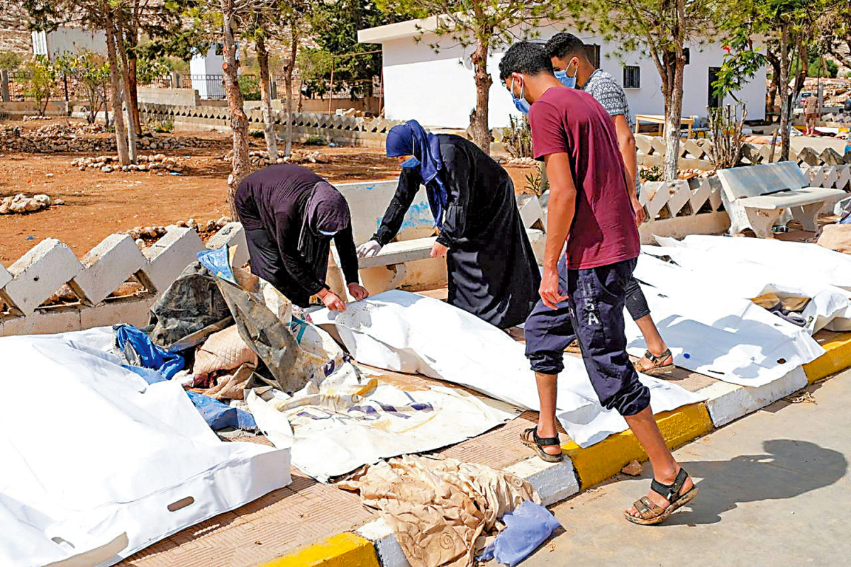 國際移民組織說,德爾納市至少3萬人因洪災無家可歸,而人道主義援助人員目前幾乎無法進入災區。據報道,該市約四分之一地區被徹底摧毀,很多居民被洪水捲入大海;當地的醫院人滿為患,連停屍間都滿了,遺體被放在走廊甚至街邊。