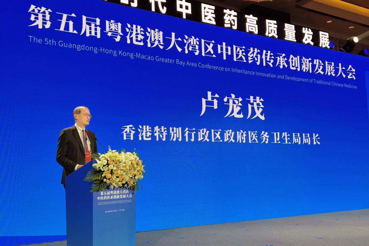 【點新聞報道】醫務衞生局局長盧寵茂今日(14日)出席第五屆粵港澳大灣區中醫藥傳承創新發展大會開幕式並致辭時表示,中醫藥發展正在邁向一個新里程、一個新時代,尤其在新冠疫情期間,中醫藥在防疫抗疫上發揮了重大的作用,讓廣大民眾以至世界再一次認識和體會到中醫藥的療效和優勢。