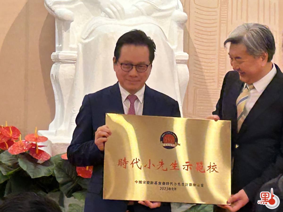 另外,開幕式上,中國宋慶齡基金會李安晉副秘書長向香港浸會大學附屬學校王錦輝中小學總校長、中國宋慶齡基金會理事陳偉佳授予「中國宋慶齡基金會時代小先生示範校」銅牌。