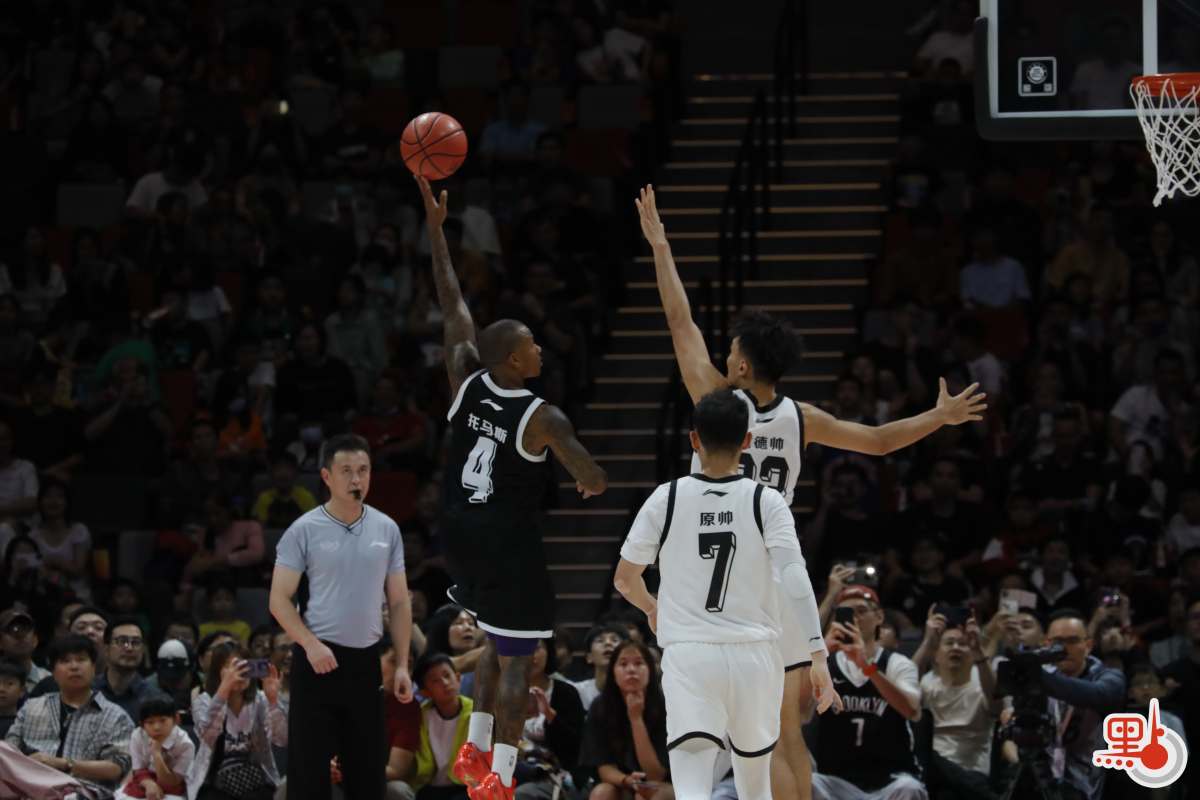 第一節比賽,「中國籃球明星隊」開局神勇,比數一度拉開8分,「國際籃球明星隊」隨後發力,艾西亞·湯馬士更加屢次秀技,比數32:33,中國賽落後一分。第二節開始,「國際籃球明星隊」肯尼·伯頓不斷帶球壓迫,大衛·詹姆斯則從籃底助攻,「中國籃球明星隊」陳林堅也不甘不弱,屢次得分,比數來到76:79。