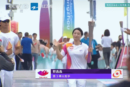 前國家隊跳水運動員、奧運冠軍、被譽為「跳水女皇」的郭晶晶成為第三棒火炬手。在火炬傳遞現場,郭晶晶與第二棒火炬手、中國科學院院士、西湖大學校長施一公交接,兩人牽手,精心設計了「金雞獨立」的單腳站立姿勢,引起現場觀眾的一片歡呼。還有不少觀眾一路跟隨郭晶晶傳遞線路追拍。