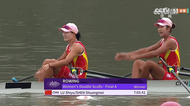 此外,賽艇男子輕量級雙人雙槳決賽,中國組合范俊傑/孫滿奪得金牌。賽艇女子雙人雙槳決賽中,中國組合魯詩雨/沈雙美以7分03秒41的成績率先划過終點,奪得冠軍。