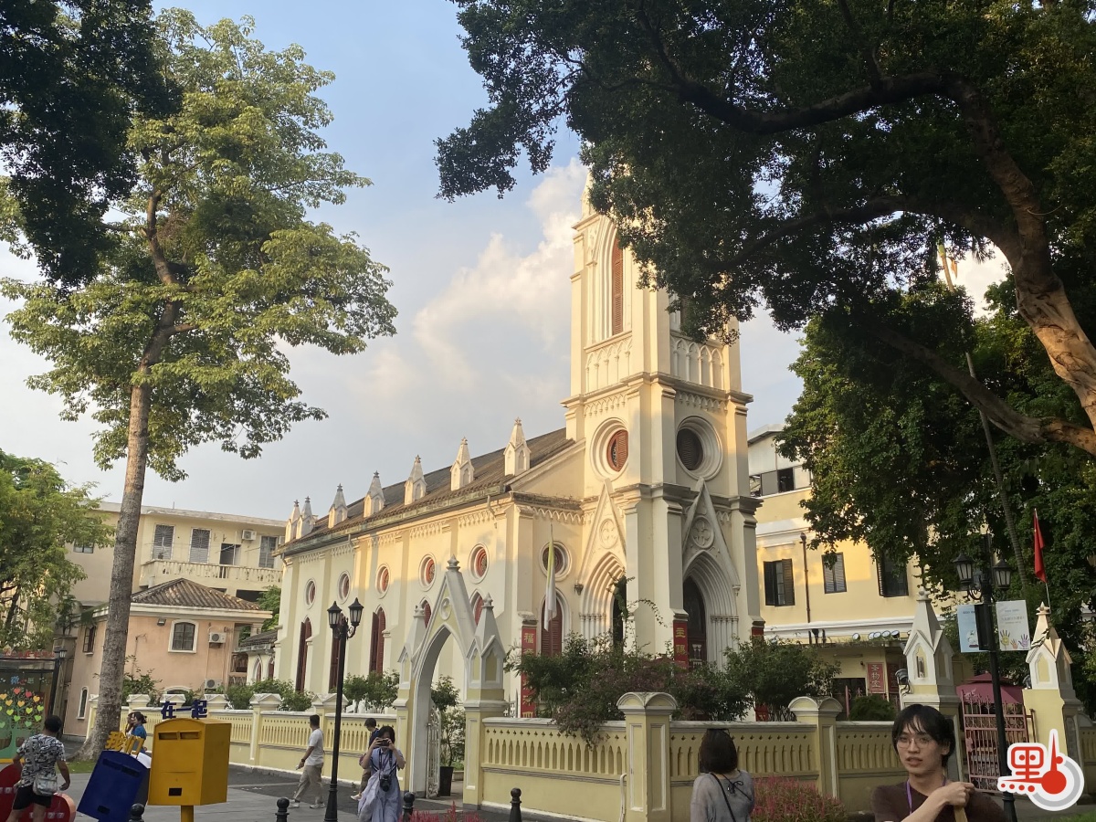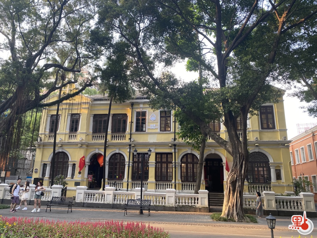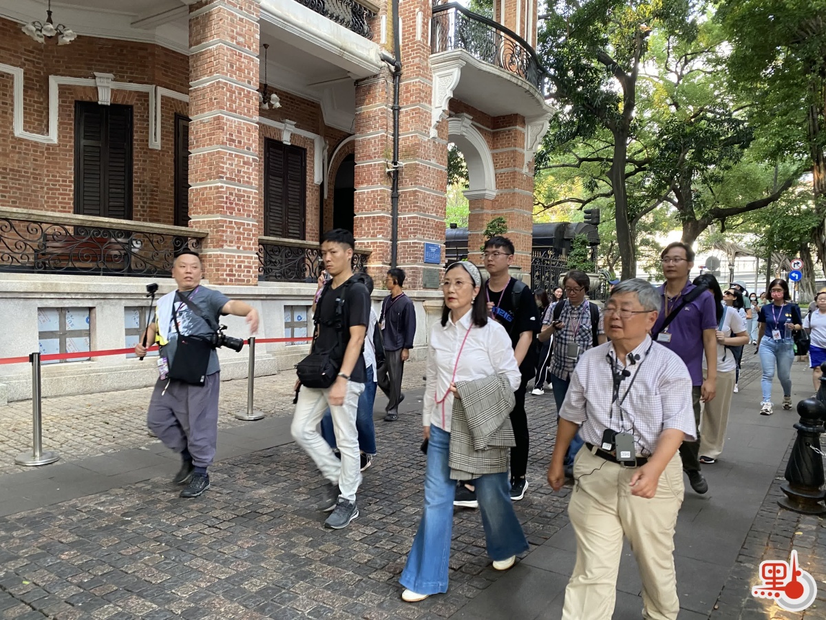 近一日的「特種兵」行程結尾,考察團來到沙面歷史建築群,這裏曾是繁忙的商業港口和交通樞紐,鴉片戰爭後淪為英、法租界地。由於這裏有新巴洛克式建築、中式傳統建築和西方古典建築等,有同學直接將這裏比如為另一個「上海外灘」。沙面古樹成蔭,各有各的姿態和特色。街上亦有不少新人拍攝婚紗照、打卡,有世外桃源的感覺。不少同學表示,自己從小紅書上搜到的廣州旅遊攻略很少有提到沙面,所以此次安排亦是一個驚喜。現如今,曾經的領事館、洋行等已經有了新的功能,歷史曾在這裏發生,又因為適得其所的活化讓這裏變得獨一無二。