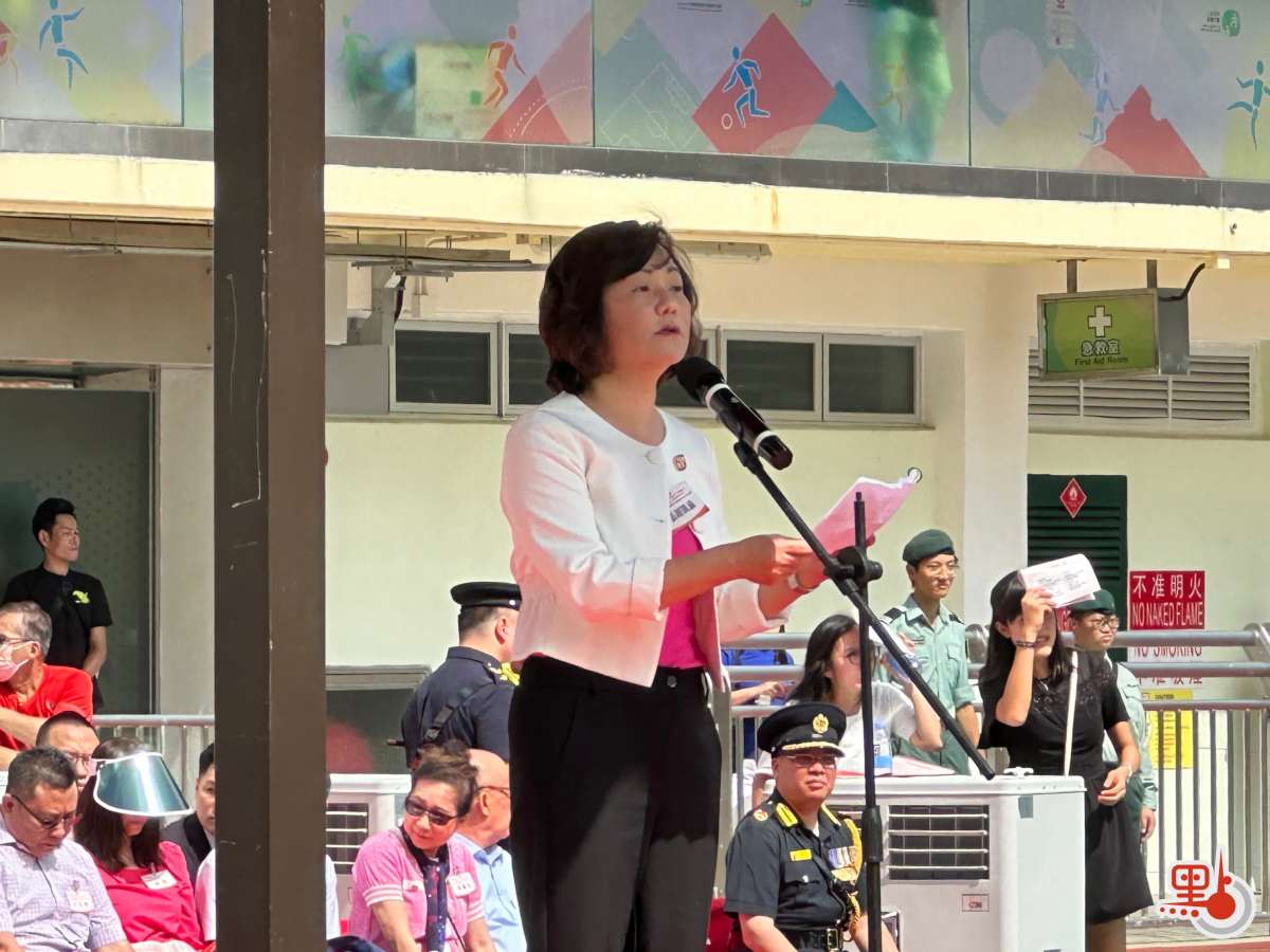 民政事務總署署長張趙凱渝致辭時表示,今日荃灣區升旗步操儀式共有10個隊伍參加,超過200名青年參與,規模龐大場面壯觀,各隊伍氣宇軒昂,精神抖擻,展示團隊精神和默契,充分體現對國民身份的自豪感。