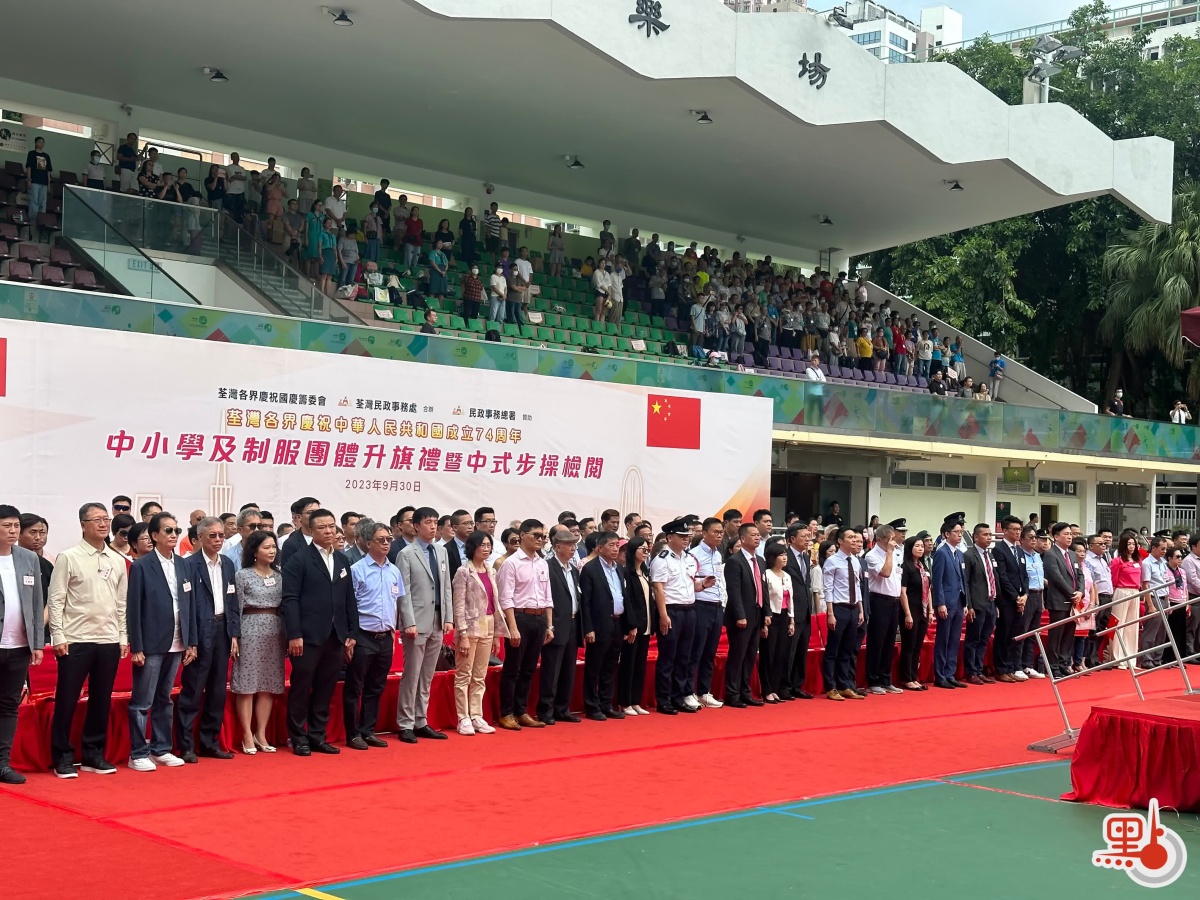 【點新聞報道】十一國慶即將來臨,荃灣各界為慶祝中華人民共和國成立74周年,連日來舉辦一系列活動,今日(30日)在荃灣沙咀道遊樂場舉行中小學及制服團體升旗禮暨中式步操檢閱。