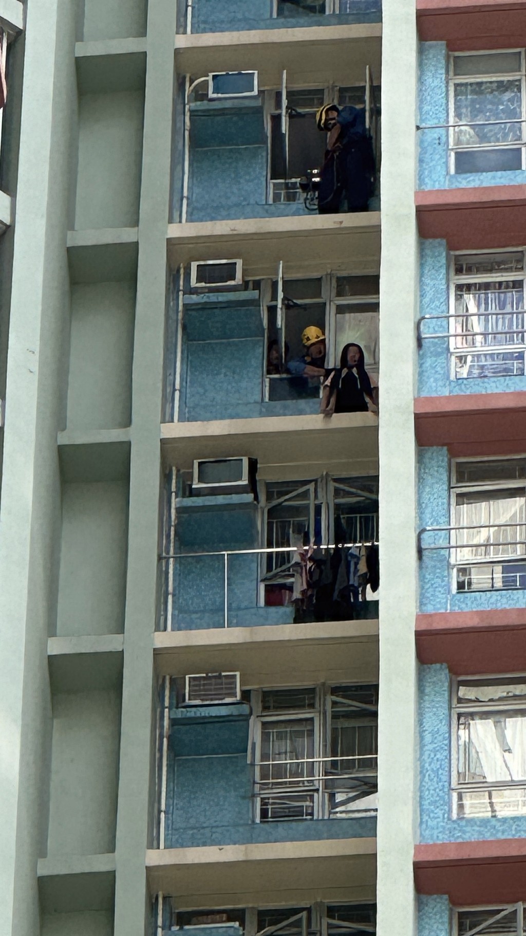【點新聞報道】今日(30日)下午2時許,慈雲山慈正邨正旭樓一名女子突情緒激動,爬出窗外站到窗台,消防接報到場,在樓下打開救生氣墊戒備,女事主目前仍然危坐,態度未見軟化。