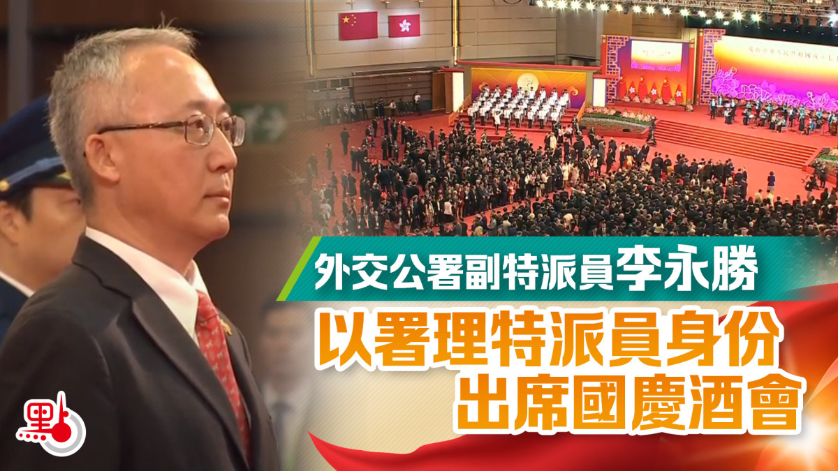 公開報道顯示,9月29日,李永勝已在本港的活動中亮相,且以外交部駐港公署署理特派員身份出席了香港工商界同胞慶祝中華人民共和國成立74周年國慶酒會。