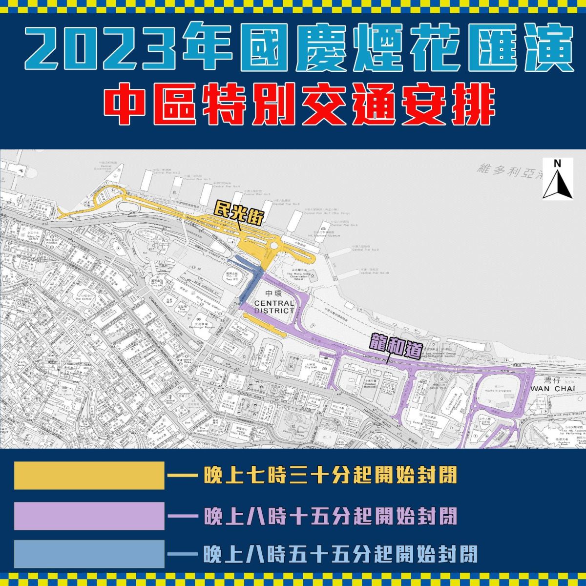 【點新聞報道】時隔5年復辦的十一國慶煙花匯演將於今晚(10月1日)9時在維港上演,港島中區及西區海濱一帶人頭湧湧。警方今晚8時許在社交平台表示,中區龍和道,東區維園道、屈臣道及威非路道已暫時封閉。