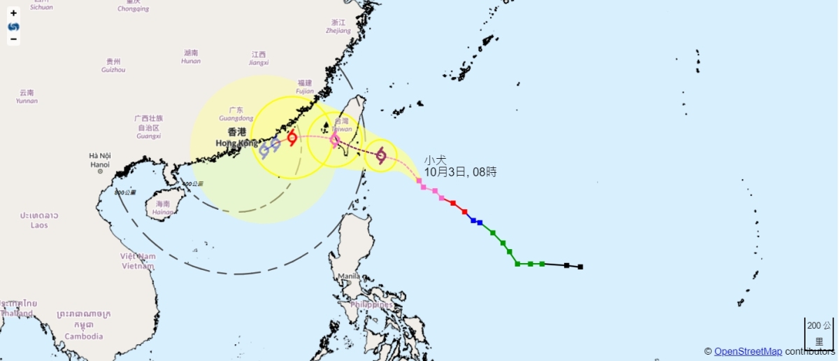 【點新聞報道】強颱風「小犬」日前迫近台灣東南部。天文台今日(3日)中午12時發布特別天氣提醒,指強颱風「小犬」明日(4日)下午進入本港800公里範圍,天文台會在明晚發出一號戒備信號。