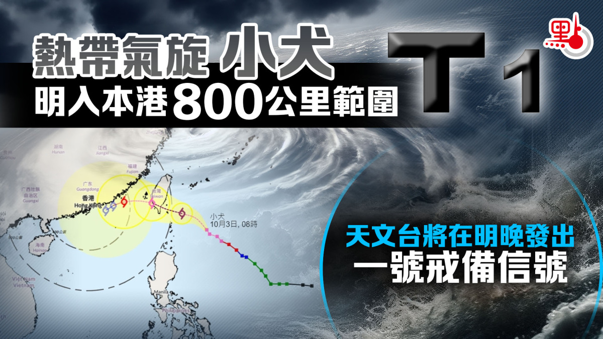 天文台預料,「小犬」會移近廣東東部沿岸,隨後可能沿廣東沿岸及鄰近海域向偏西方向移動,並受東北季候風影響逐漸減弱,但「小犬」對本港天氣的影響視乎其減弱速度及與珠江口距離。若減弱速度較慢,並較接近珠江口一帶,星期五(6日)及周末期間風勢頗大,亦有狂風驟雨。