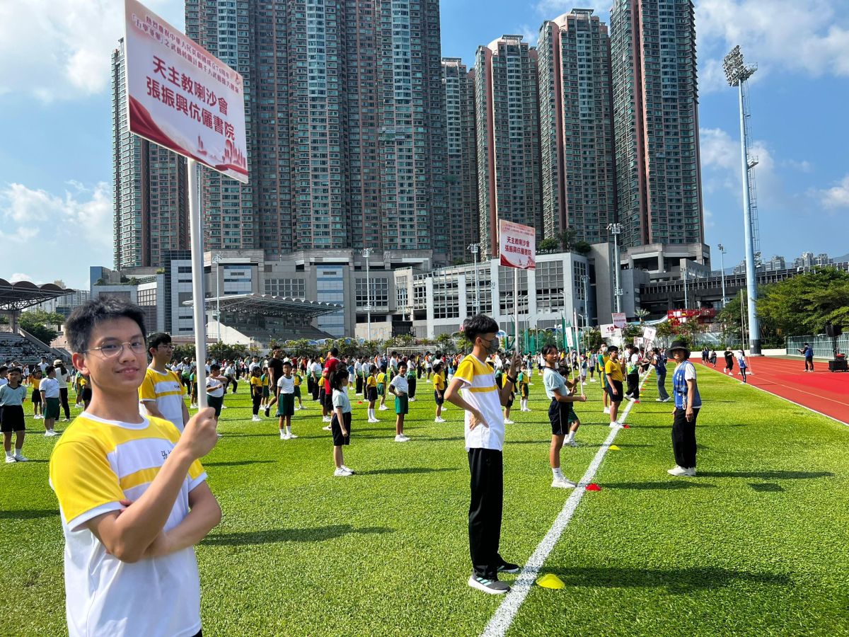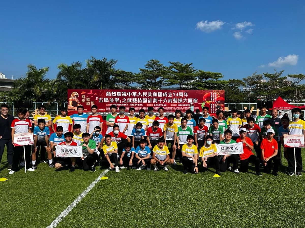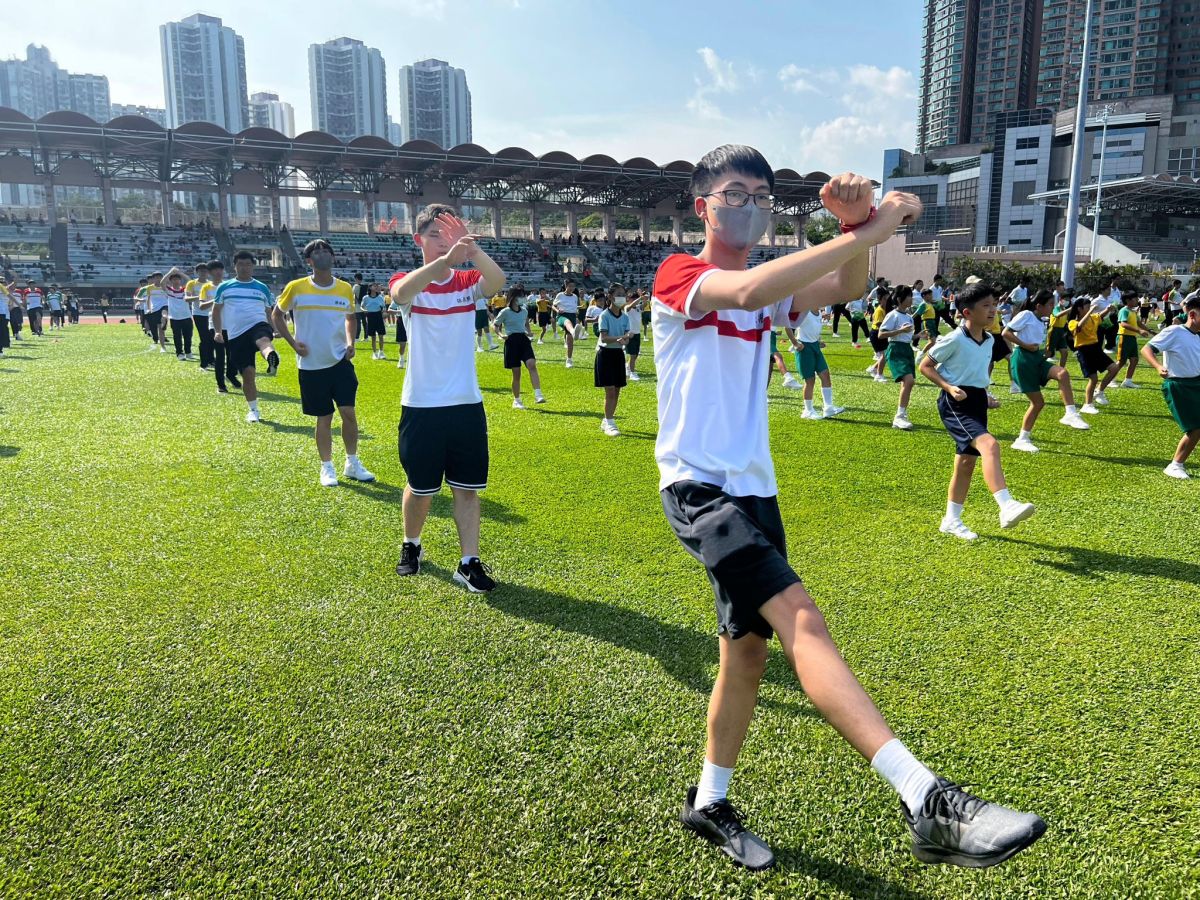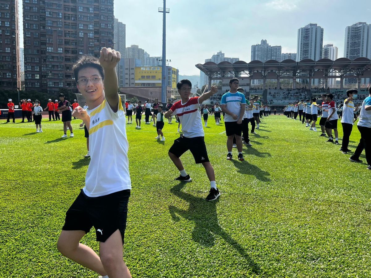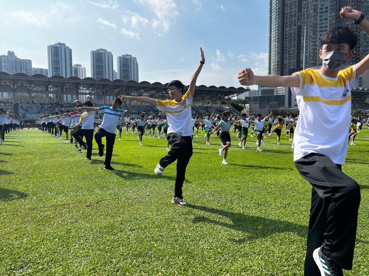 適逢10月1日國慶日,本校亦參與了計劃舉辦的年度盛事——千人武藝操大匯演。是次匯演獲教育局、民政及青年事務局支持,假青衣運動場舉行,多所先導學校派出優秀學生參與。其中,本校師生動員,由校長、副校長及一眾體育老師,帶領來自中四及中五的學生參與武藝操匯演外,亦擔任持旗手協力持國旗進場,眾人團結一心,全情投入!
