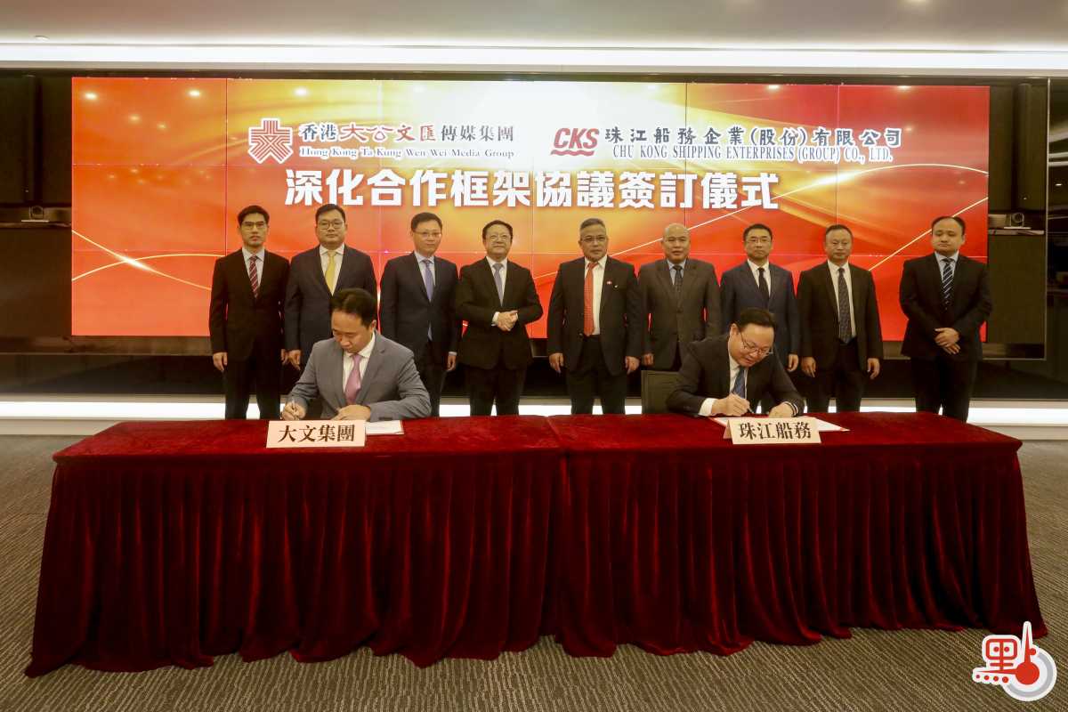 【點新聞報道】10月5日,香港大公文匯傳媒集團發行運營和品牌推廣中心與珠江船務企業(股份)有限公司簽訂深化合作框架協議。在現場見證簽約一刻,廣東省港航集團有限公司總經理助理曾和內心感慨萬千。「1987年,我剛從學校畢業踏入廣東港航集團旗下廣東省珠江航運公司工作,第一次讀到的香港報章就是《大公報》和《文匯報》。沒想到36年後的今天,我第一次踏進兩份報紙在香港的總部,就是見證着廣東省港航集團駐港公司珠江船務企業集團和大公文匯集團達成更深入的合作。」曾和感慨稱,珠江船務用客船運載旅客往返於香港和珠江三角洲各城市,香港文匯報和大公報則文以載道,以文字溝通兩地的資訊。「從過去到未來,大家都共同努力搭起香港和內地交流橋樑,實在是緣分!」