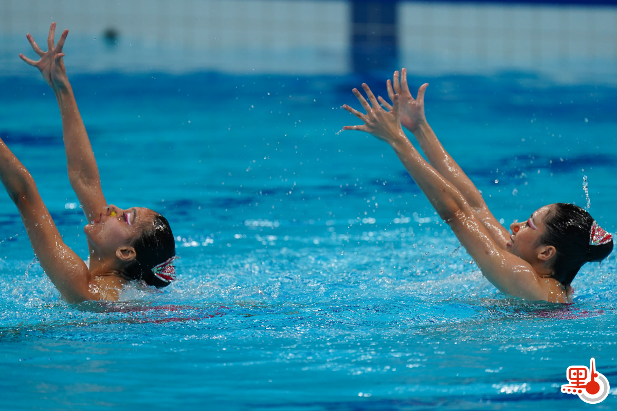 【點新聞報道】10月6日,杭州亞運會花樣游泳雙人技術自選項目在杭州奧體中心游泳館開賽,香港選手莊逸芙、李娜迪為觀眾演驛「水中芭蕾」,以176.8884分位列第八進入明天的決賽。