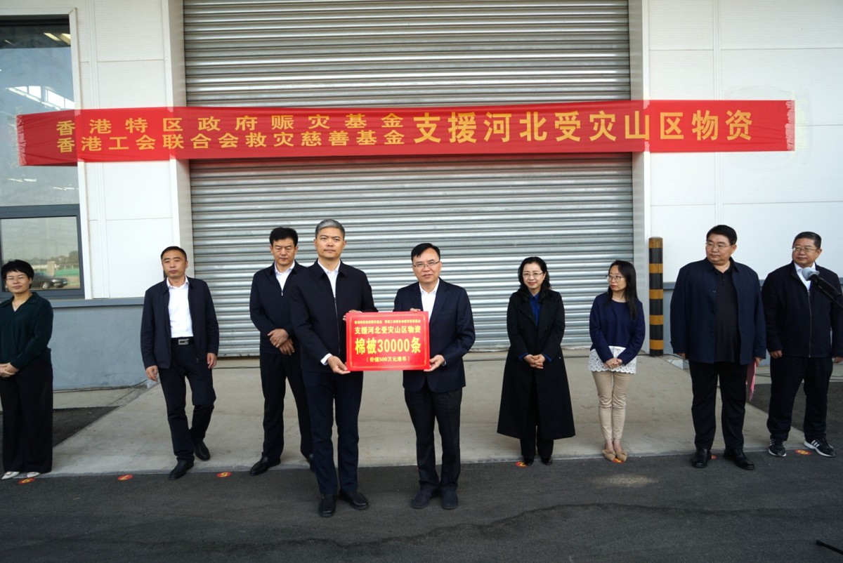 隨着北方氣溫逐漸轉向寒冷,「香港工會聯合會救災慈善基金」獲得香港特區政府賑災基金的撥款港幣500萬元,購買了3萬張棉被,捐贈給受災民眾以應付馬上來襲的寒冷天氣。黃國說,工聯會一直與河北省總工會密切聯繫和合作,時刻關注着河北的救援和重建工作。每筆善款、每件物資,承載的是香港與內地同胞血濃於水的情懷,更體現了全國人民團結救災、守望相助的血脈深情。工聯會希望透過送贈禦寒物資盡一點微薄心意,讓災民感受到香港同胞的溫暖和愛。