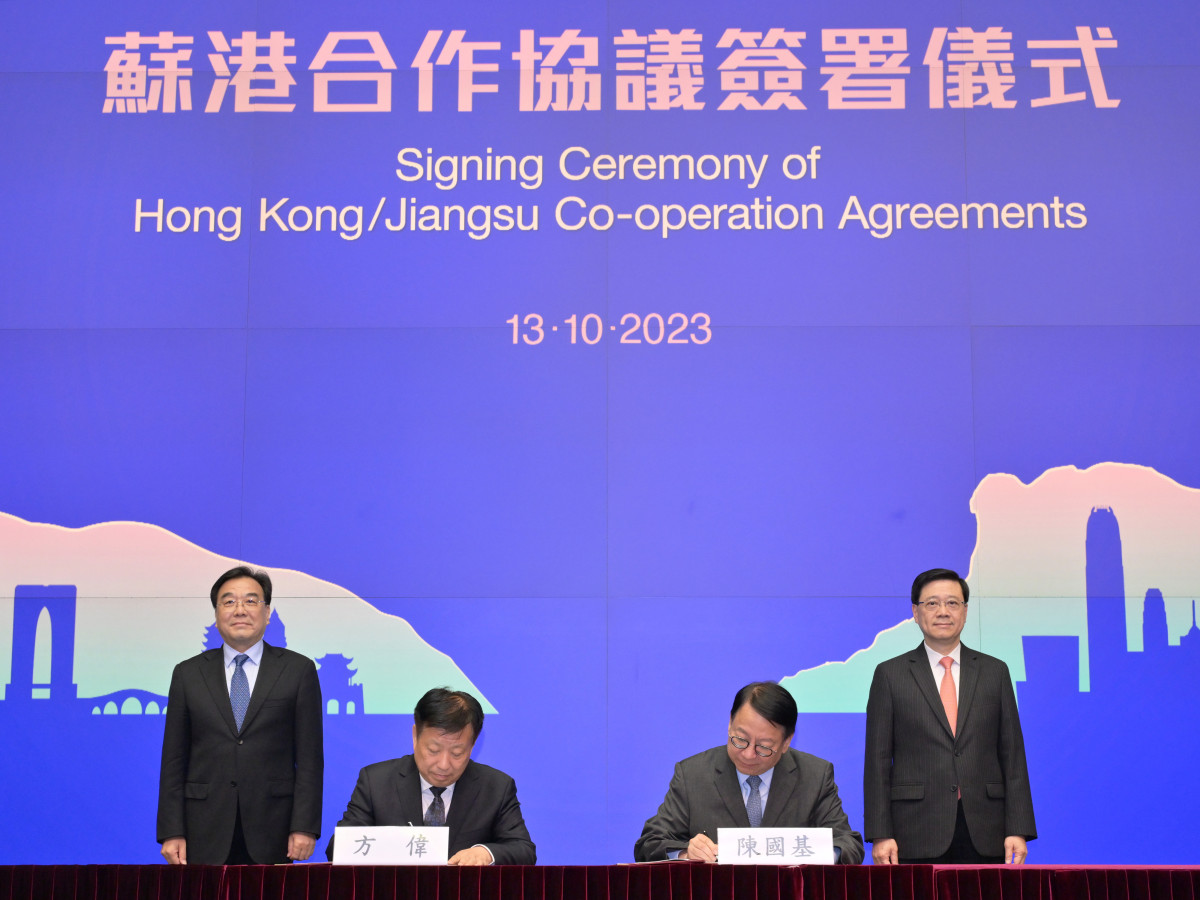 政務司司長陳國基與江蘇省副省長方偉於儀式上簽署《江蘇省人民政府與香港特別行政區政府深化蘇港交流合作協議》。此外,兩地政府部門和機構亦在儀式上簽署五份合作文件:《江蘇省教育廳與香港特別行政區政府教育局合作備忘錄》;《江蘇省青年聯合會與香港特別行政區政府民政及青年事務局關於共同深化青年交流發展合作備忘錄》;《江蘇省科學技術廳與香港特別行政區政府創新科技署關於開展創新科技合作的諒解備忘錄》;《江蘇省商務廳與香港特別行政區政府投資推廣署合作備忘錄》;及《江蘇省商務廳與香港貿易發展局深化蘇港經貿合作備忘錄》。