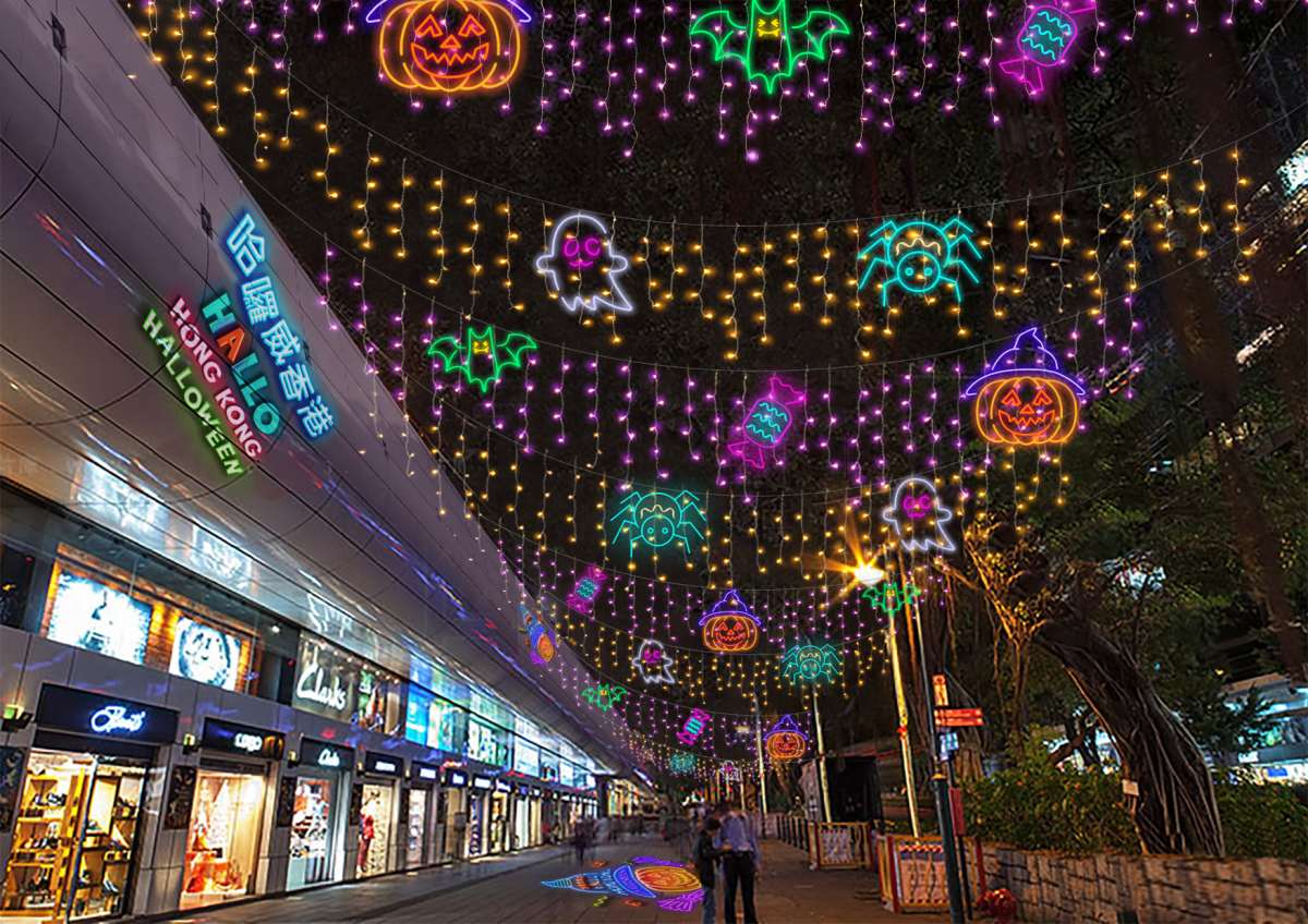 設計趣緻且色彩繽紛的南瓜、小精靈﹑蝙蝠、蜘蛛﹑糖果等造型的霓虹燈飾﹑主題貼紙﹑LED藝術裝置,即日起陸續填滿尖沙咀栢麗購物大道﹑星光大道﹑海港城﹑灣仔利東街﹑中環半山扶手電梯﹑及銅鑼灣祟光百貨外的巴士站,為城市加添萬聖節節慶及派對氛圍,吸引大家眼球,一起捕捉有趣的萬聖節小精靈,盡情打卡。