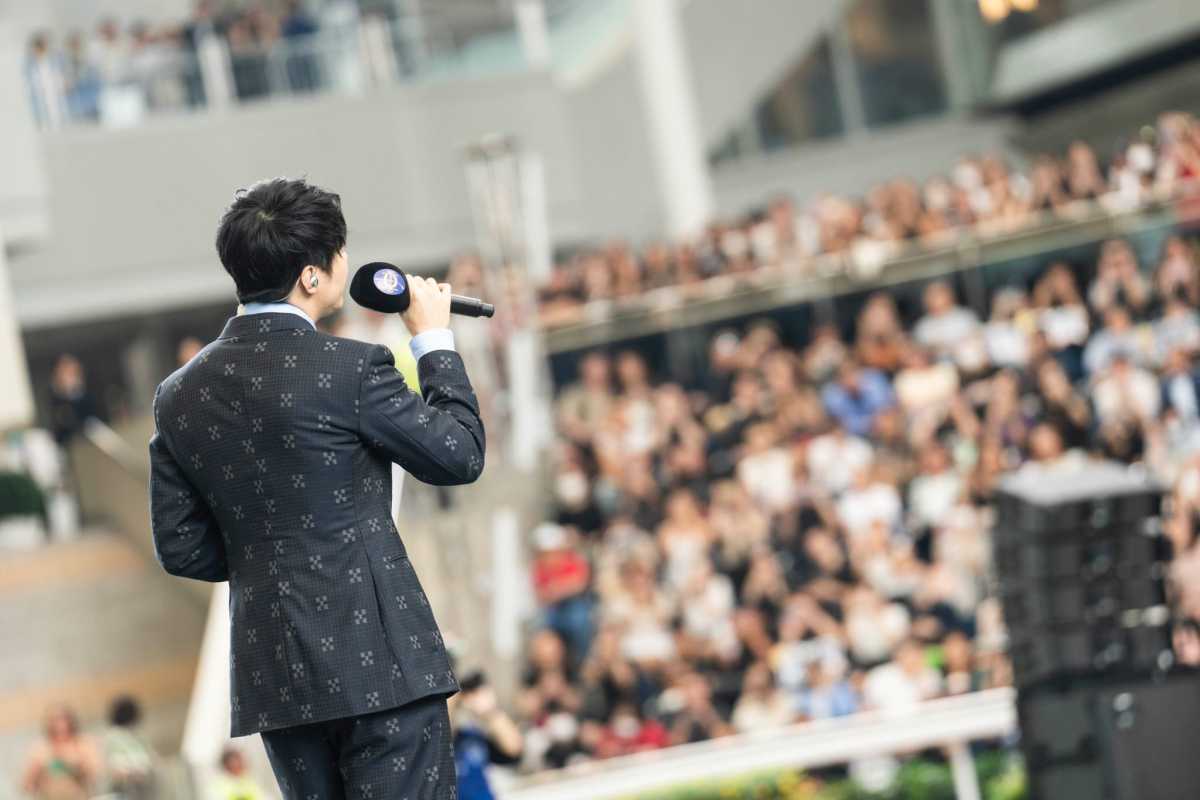 穿上一身深色暗花西裝,配襯黑色煲呔的Ian風度翩翩魅力非凡,甫出場即引來全場哄動。Ian一口氣獻唱了3首作品,包括《正式開始》、《抱抱無尾熊》及《留一天與你喘息》,令歌迷大飽耳福,期間他又遞咪向觀眾方向,笑言測試大家對歌詞熟悉度。Ian於台上表示首次入場心情興奮,自己也曾於拍MV時嘗試策騎:「當然冇賽馬咁高速,但都係好好嘅體驗。」又表示稍後會近距離觀賽。最後他又走近觀眾席與粉絲打招呼,令粉絲再度尖叫。