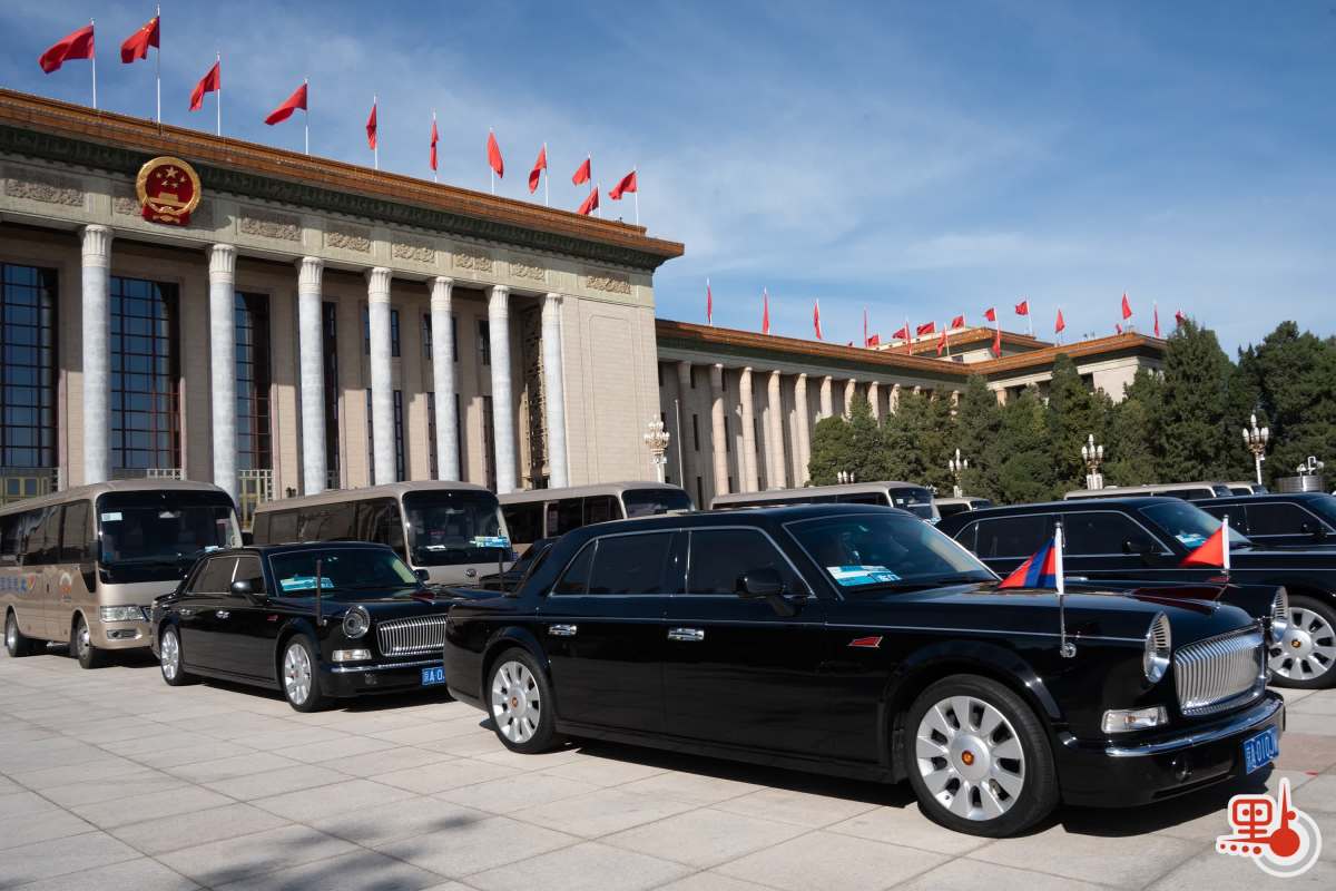 10點剛過,與會領導人和國際組織負責人在工作人員的引領下陸續走進迎賓廳,順着標籤提示,很快找好了站位。他們之間紛紛互道「good morning」,有的握手寒暄,有的隔空致意。待大家站定後,中國國家主席習近平和俄羅斯總統普京壓軸走來,與他們同行的還有站位在其左右兩側的哈薩克斯坦總統托卡耶夫、埃塞俄比亞總理阿比和印度尼西亞總統佐科。