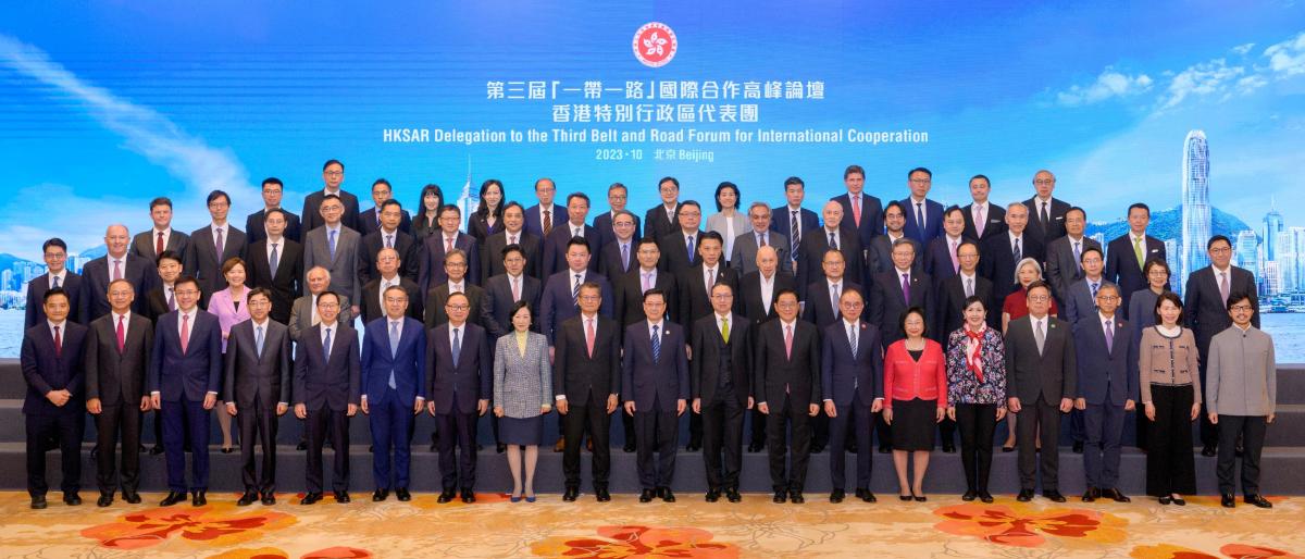 【點新聞報道】由行政長官李家超率領的高規格香港特別行政區(特區)代表團今日(18日)繼續積極參與在北京舉行的第三屆「一帶一路」國際合作高峰論壇,共有6位官員和9位非官員成員分別於九場平行論壇發言或擔任主持。所有香港代表團成員亦分批出席九場平行論壇,全面參與高峰論壇的活動。