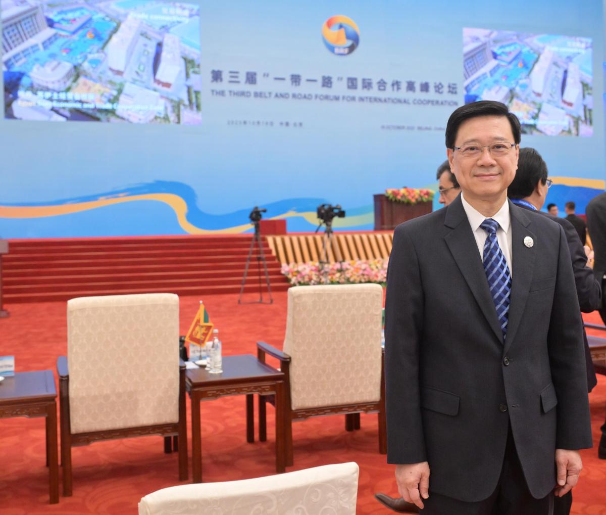 李家超在「互聯互通」高級別論壇致辭,向參會者介紹香港在深化基礎建設「硬聯通」和規則標準「軟聯通」的工作和貢獻。李家超表示,香港在「一國兩制」下享有背靠祖國、聯通世界的得天獨厚優勢,一直扮演着內地與「一帶一路」國家雙向平台的角色,是「一帶一路」以至全球投資及經貿的重要節點。他指出,香港是走進「一帶一路」的資金互聯互通的重要渠道,亦是世界各地客貨進出內地的主要門戶。同時,香港亦重視「一帶一路」的「軟聯通」發展,致力促進專業服務領域互聯互通和民心相通。未來香港特區會致力加強與「一帶一路」國家的雙邊及多邊經貿關係,繼續努力提升國家與國際的互聯互通。