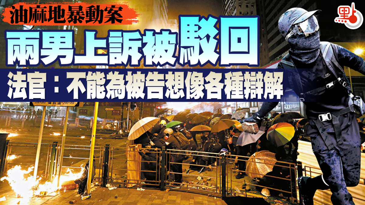 2019年11月,一批暴徒在油麻地一帶暴動,圖「營救」其他被包圍在理工大學內的暴徒,涉案213名被告中有147人被判監29個月至64個月。其中,有兩名男子受審後被裁定暴動罪成,同被判囚4年半,於昨日向高等法院申請上訴許可。他們聲稱,原審法官錯誤排除他們是「圍觀」者或正前往鄰近廣華醫院「求醫」的可能性。上訴庭法官潘敏琦表示,法庭無須為沒有出庭作供的被告憑空想像各式各樣的答辯理由或可能性,認為上訴毫無合理爭辯之處,拒絕批出上訴許可,將於3個月內頒下書面判詞。