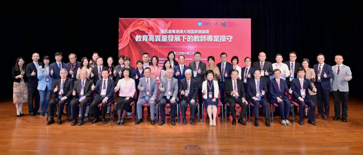 【點新聞報道】「第五屆粵港澳大灣區師德論壇」今日(21日)舉行,論壇由華南師範大學和香港教育大學共同主辦,並獲國家教育部教師工作司、教育部港澳台辦公室、廣東省教育廳和香港特區政府教育局作指導單位。論壇以「教育高質量發展下的教師專業操守」為主題,約500名來自粵港澳的學者、專家、校長及教師參與,全國亦有超過5萬名教育工作者線上同步參與。