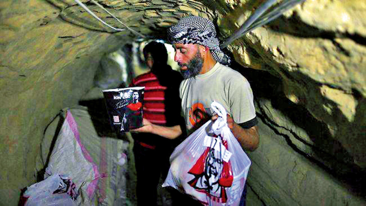 以色列嚴格控制進入加沙地帶的物資,因此加沙南部邊境與埃及拉法口岸附近地區走私業蓬勃發展,豪華汽車、建築材料以及iPad、iPhone等各種消費品,通過數百條地道流入加沙。在「加沙地鐵」的運送貨物中,甚至包括KFC的炸雞。