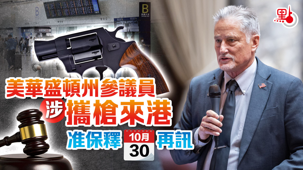 【點新聞報道】報稱是美國華盛頓州參議員的一名63歲美國籍男子,上周六(21日)乘飛機抵達香港國際機場時,其行李被搜出一支左輪手槍,被控無牌管有槍械罪。案件昨日(23日)在沙田裁判法院首次提堂,他暫時無須答辯,裁判官水佳麗將案押後至下周一(30日)在西九龍裁判法院再提訊。被告獲准以兩萬元現金保釋,其間須交出旅遊證件及不得離港。