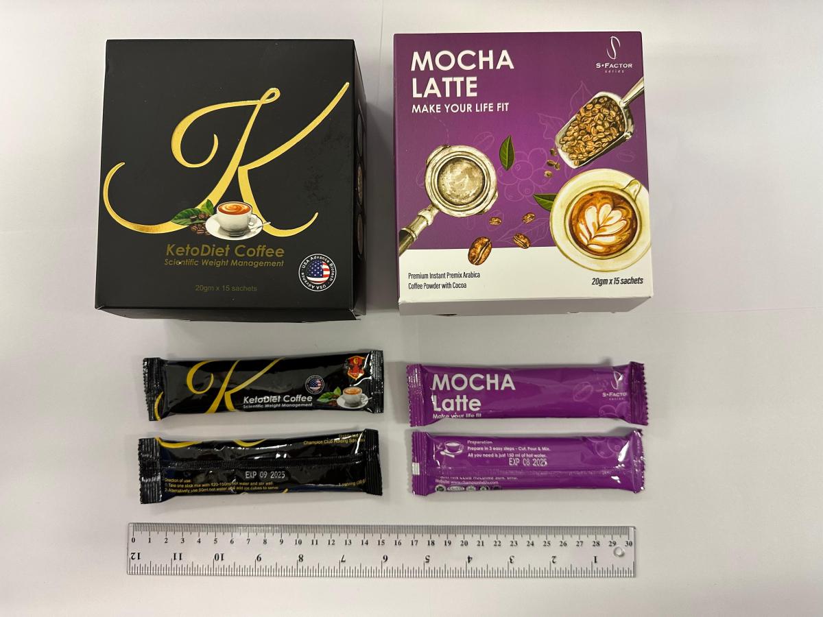 【點新聞報道】衞生署今日(24日)就銷售兩款分別名為「KetoDiet Coffee」及「S·Factor Mocha Latte」的產品採取行動,該些產品被發現含有未標示受管制及已禁用藥物成分。行動中,一名41歲男子涉嫌非法售賣及管有第1部毒藥被警方拘捕。