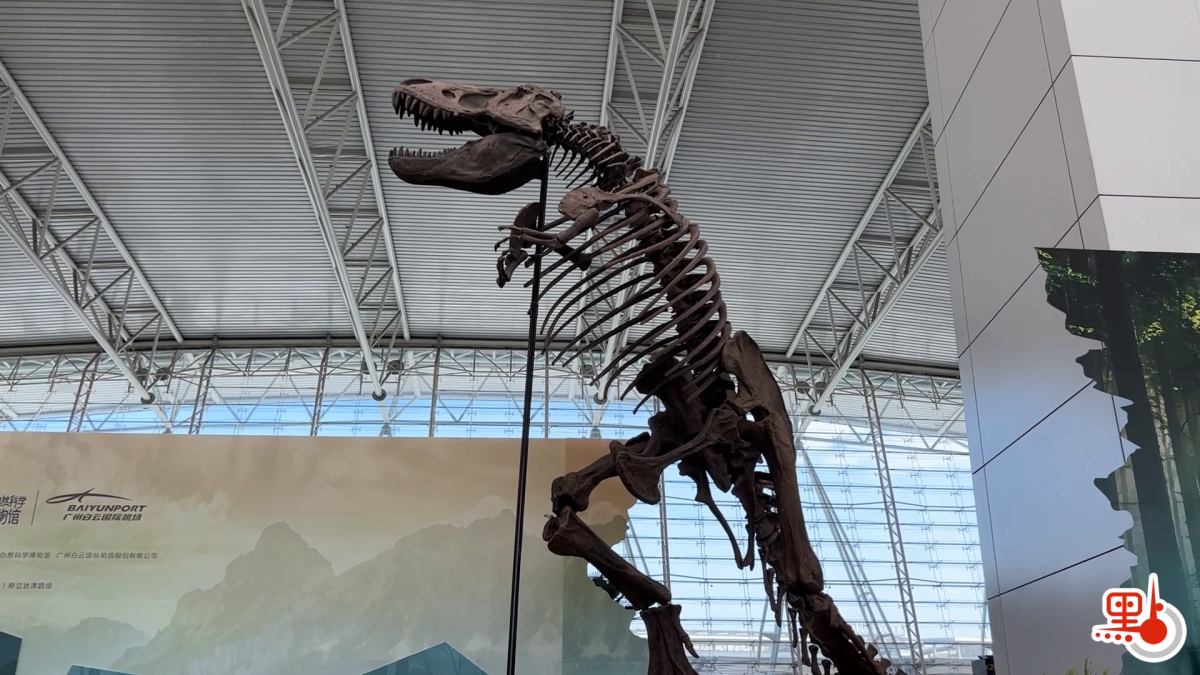【點新聞報道】近日「藏龍臥鱷破殼而出」南粵恐龍化石展在廣州白雲國際機場展出,在T1航站樓的顯眼位置,來往旅客可以見到1:1復原的霸王龍骨架,還有由廣州中學生發現挖掘的各種恐龍化石真品,透過參觀可以對南粵古生物分佈有大致了解,本期大灣區錦囊就帶大家到現場一探究竟。