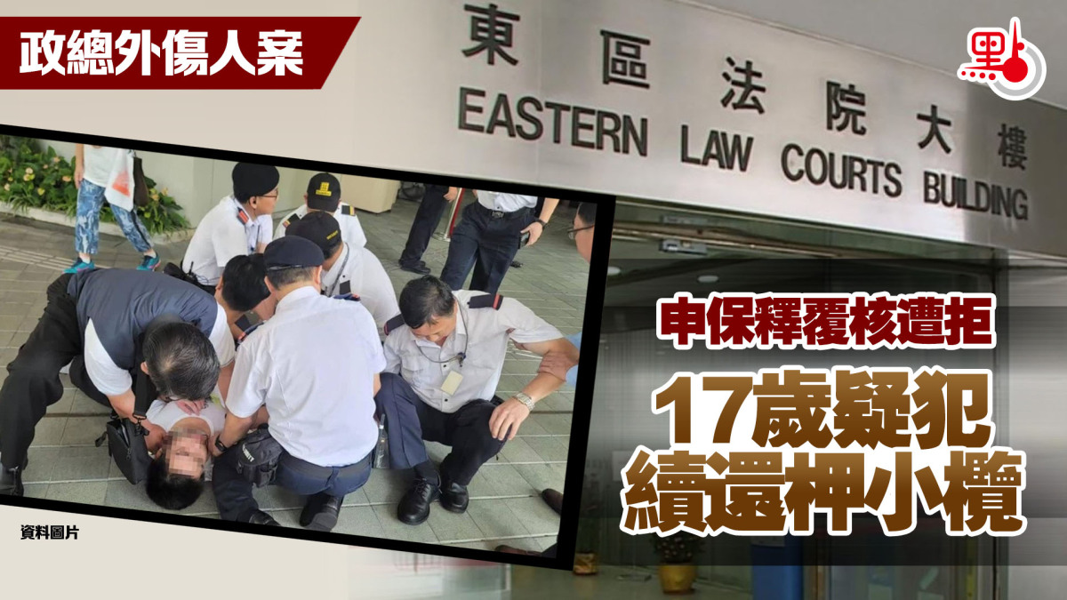 金鐘政府總部外持刀傷人案,涉案的17歲青年被起訴一項傷人罪,自首次提堂起還柙小欖精神病治療中心候訊。被告昨於東區裁判法院再申請保釋覆核,裁判官梁少玲考慮後拒絕批准保釋,被告須繼續還柙。案件將於12月14日再訊,以待進一步調查。