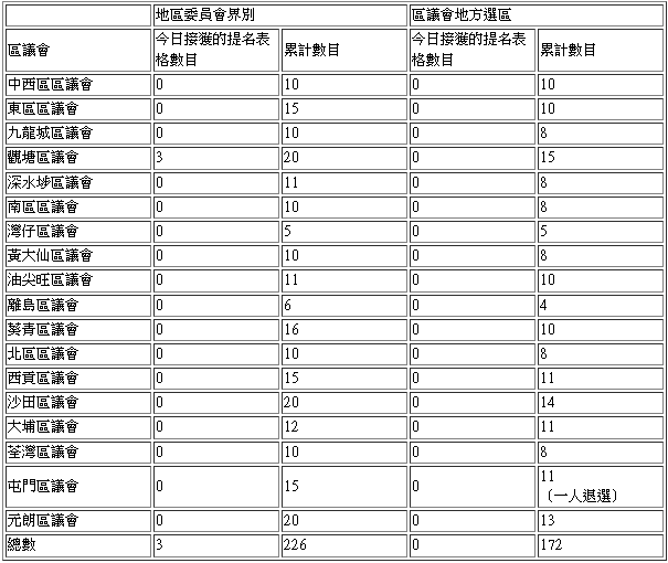 【點新聞報道】2023年區議會一般選舉的18個地區委員會界別和44個區議會地方選區的選舉主任今日(28日)共接獲3份提名表格。提名期於10月17日開始,至10月30日結束,至今共接獲398份提名表格。