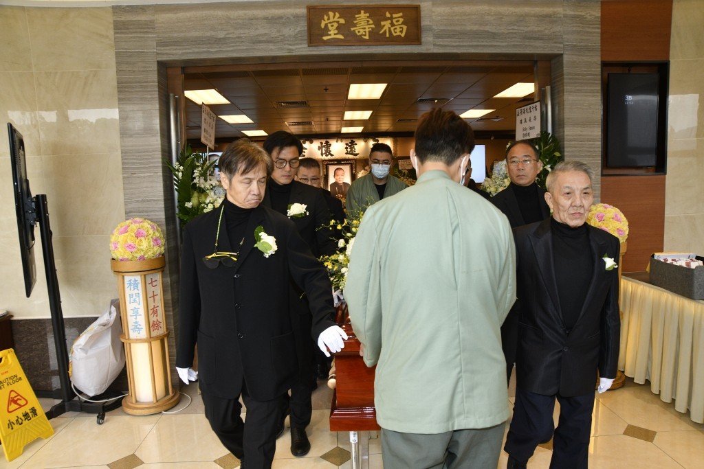 孟海的家人一早到靈堂打點,為孟海扶靈的楊明、錢嘉樂、盧惠光等亦陸續現身。而曾是「洪家班」的孟海與洪金寶有多年交情,洪金寶今日撐住拐杖及戴口罩現身,送孟海最後一程。曾志偉今日亦有現身送別。