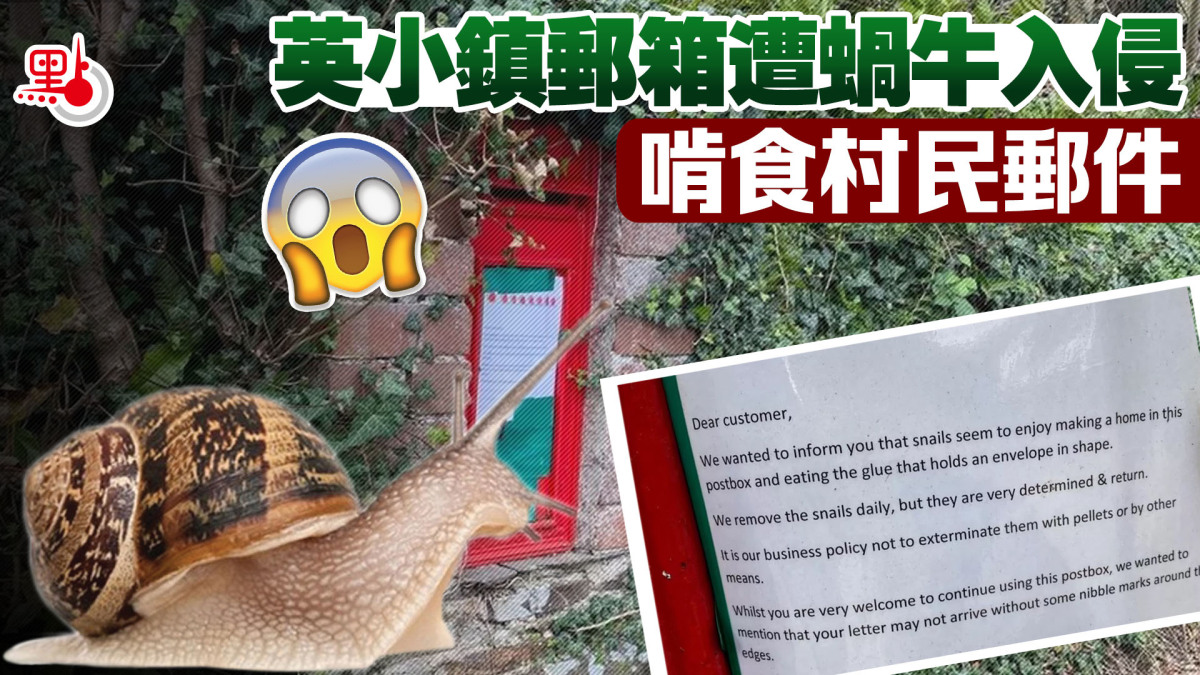 英國西南部德文郡一座小鎮,最近有一戶人家的郵箱有蝸牛入侵,啃食被郵差投遞進來的郵件。儘管已每日清除這些不速之客,但牠們似乎「非常堅定」,不斷重新再爬回來。