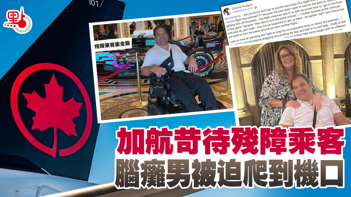 加拿大一名身患痙攣性腦癱症的男子與妻子乘搭加航班機前往美國旅遊,機艙人員在抵埗後拒絕提供任何協助他到達機頭的滑行裝置,迫使他雙手用力拖着身體爬行到出口坐回自用電輪椅下機。這對夫婦直斥機艙人員「冷血」,並覺得受到加航機員羞辱。加拿大運輸局的執法人員已就事件展開調查。