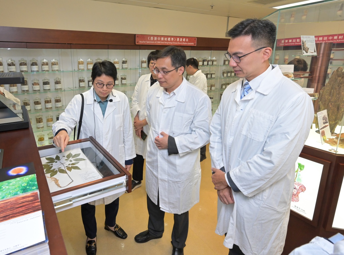國家中醫藥管理局及中國中醫科學院代表團到訪位於香港科學園的衞生署政府中藥檢測中心(檢測中心),參觀檢測中心內各個實驗室及中藥標本館等,了解衞生署中藥檢測科研工作。林文健向代表團介紹檢測中心的最新發展,包括位於將軍澳的檢測中心永久大樓的發展計劃,以及在施政報告中提及將於2024年年初完成構建的「數碼化中藥平台」等。