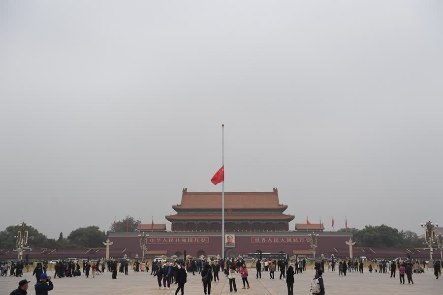據新華社報道,11月2日,為悼念李克強同志,首都天安門下半旗誌哀。