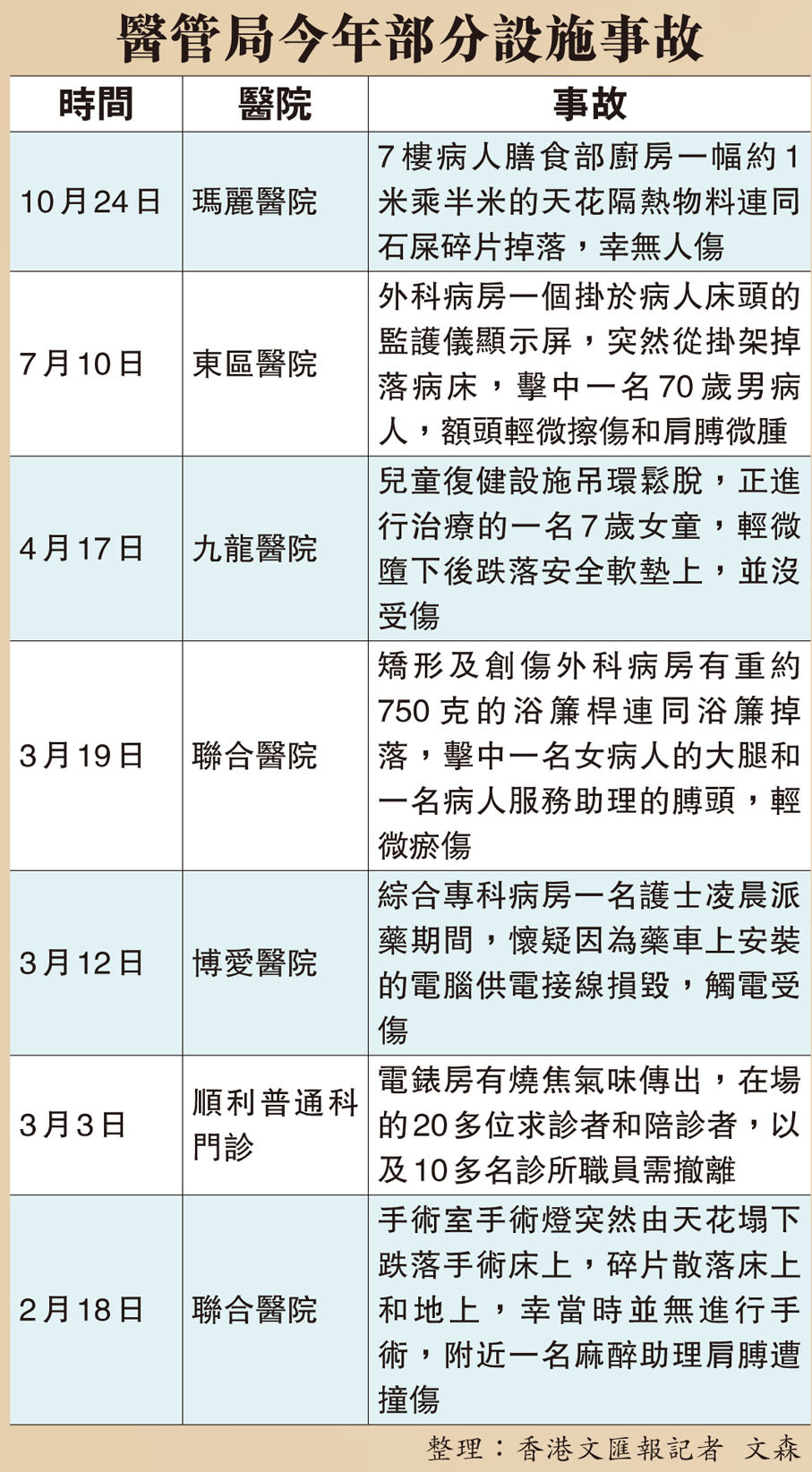 據悉,醫管局已經委託港大機械工程系前客座副教授林超雄作為獨立專家進行調查。他曾擔任調查紅館去年MIRROR墜屏幕嚴重事故的工作小組專家顧問,在今年初聯合醫院發生手術燈掉落事件亦獲委任為專家顧問。