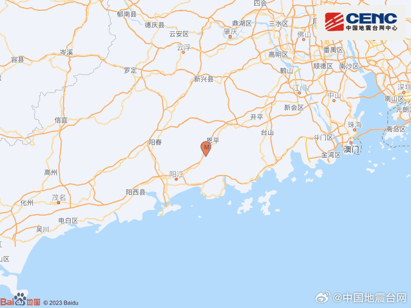 【點新聞報道】據中國地震台網正式測定:11月04日19時24分在廣東江門市恩平市(北緯22.08度,東經112.25度)發生4.3級地震,震源深度8千米。