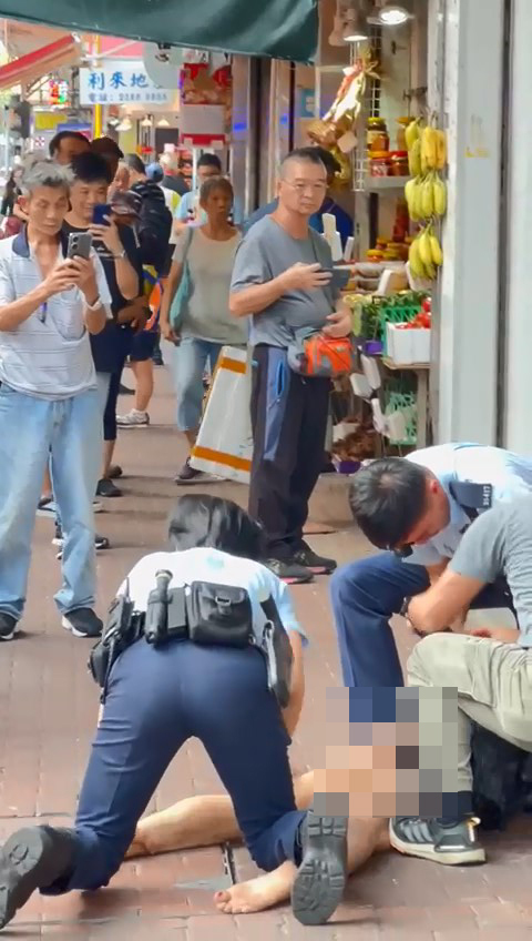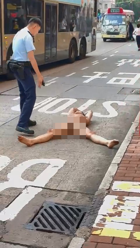 【點新聞報道】今日(7日)網上流傳兩條片段,片中見到一名男子全身赤裸躺在荔枝角道的馬路上,警員到場驅趕,要求其返回行人路,男子竟大吵大鬧,最終被警員按在地上制服。詎料男子前往醫院途中突然昏迷,送院後證實死亡。
